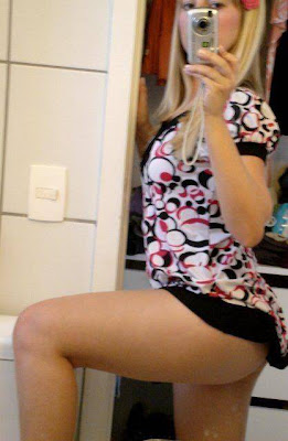 İki yuvarlağın arasında kaybolan külotun bacak arasına doğru belirginleşen kısmındaki ortası yarık kabarıklığın amcığı olduğu rahatlıkla anlaşılıyordu.