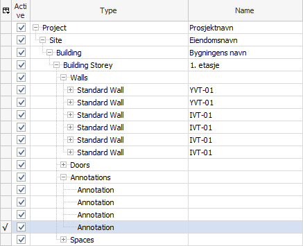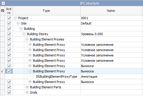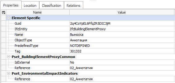 При этом стандартного класса IfcAnnotation, отвечающего за аннотации, в дереве элементов не оказалось.