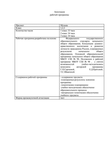 Аннотация к рабочей программе музыка 60 фотографий