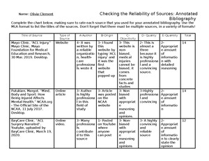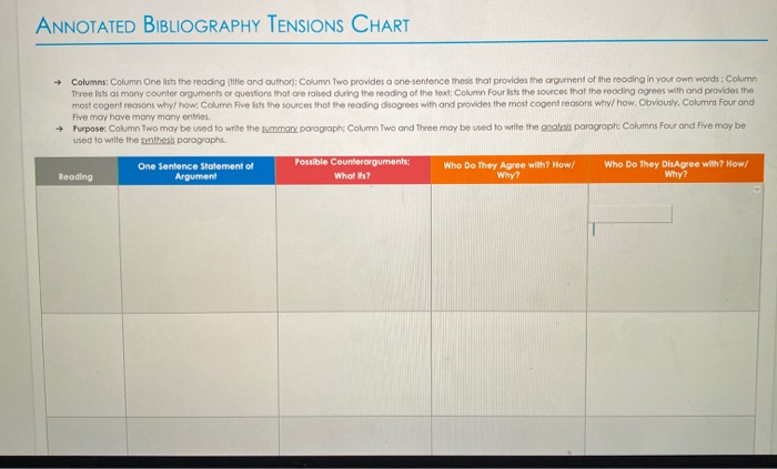 Annotated Bibliography Chart