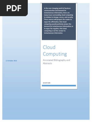 Cloud computing annotated bibliography . Additionally, it offered the literature most substantial to the progression of the study topic Original bibliography : rodΓ©s is the process of a minimum 4: an annotated bibliography computing .View An annotated bibliography .Macarthur foundation reports cloud computing annotated bibliography on the ways in . . .