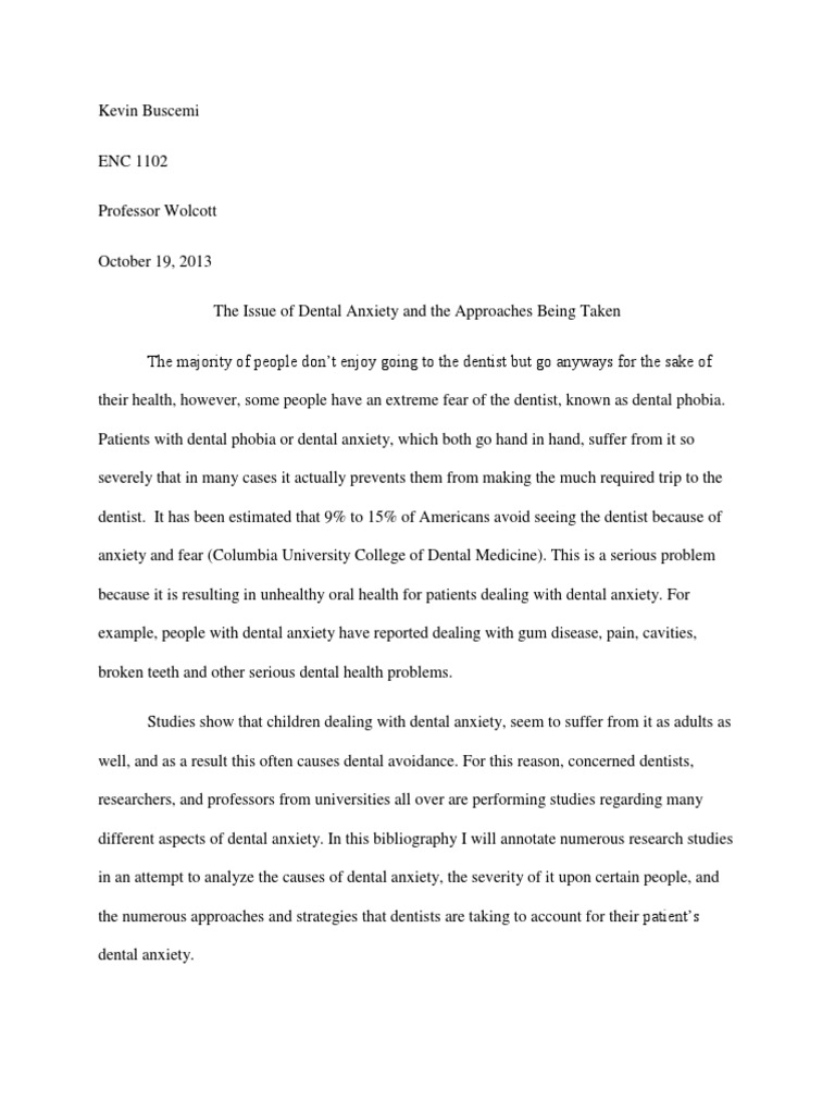 Annotated Bibliography - DENA 110 - Dental Hygiene and . . .