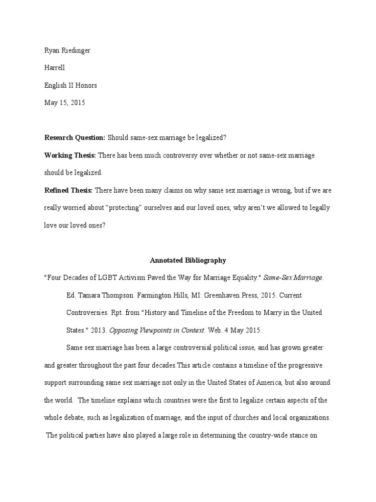 Annotated Bibliography Gay Marriage