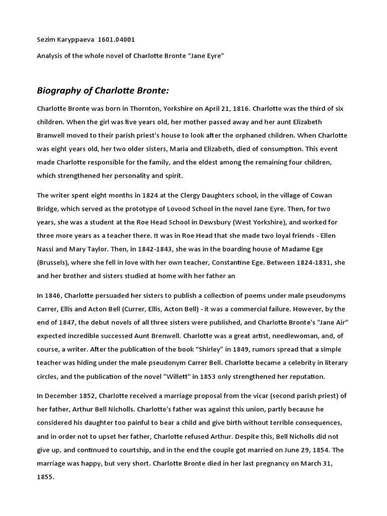 Charlotte was the first of the Bronte siblings to publish her work and that novel, Jane Eyre , remains her most famous and ,for many, best work . Indeed, it regularly features in "Best Novels of All Time" lists . However she had just three of her novels published during her lifetime - Jane Eyre (1847), Shirley (1849) and Villette (1853) .