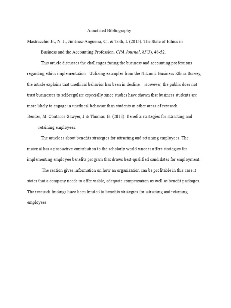 Ethics in Business: Annotated Bibliography Example . . .