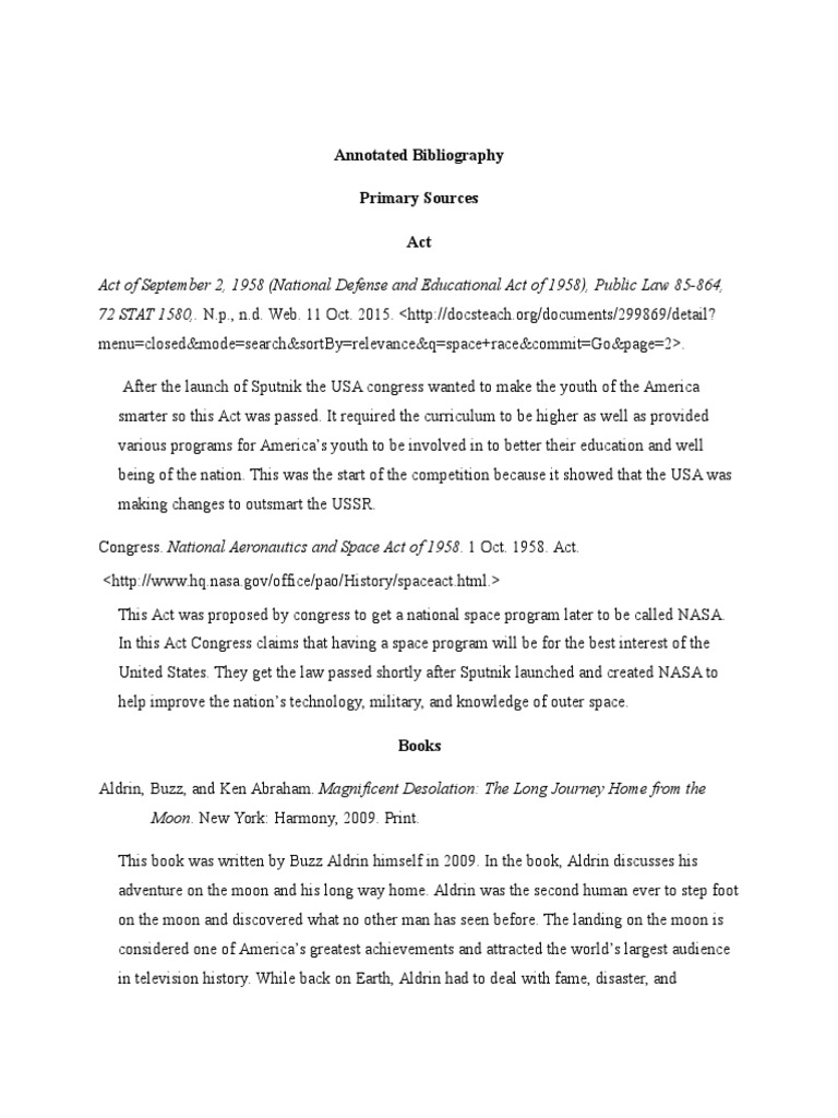 Annotated Bibliography On The Space Race