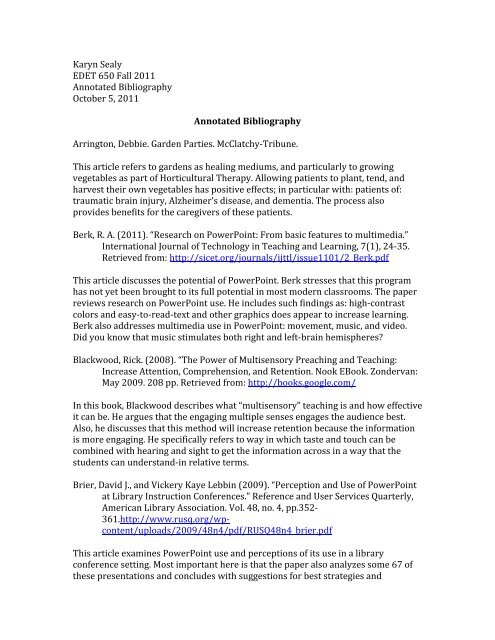 PPT Annotated Bibliographies - University of Kentucky