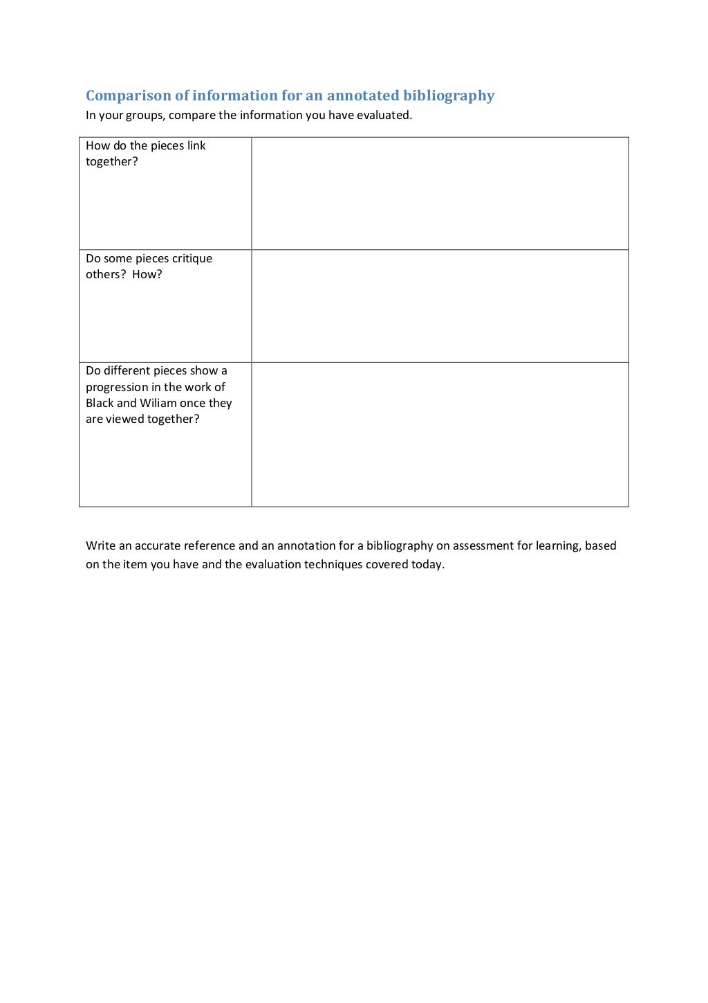 Annotated Bibliography Worksheet : Writing Program . . .