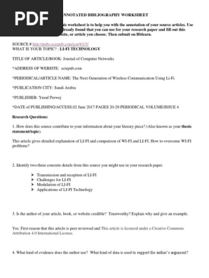 Annotated Bibliography Practice Worksheet