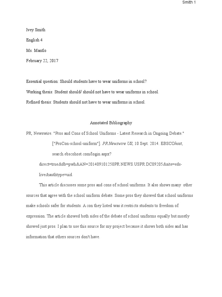 Essay On School Uniforms Annotated Bibliography - 772 . . .