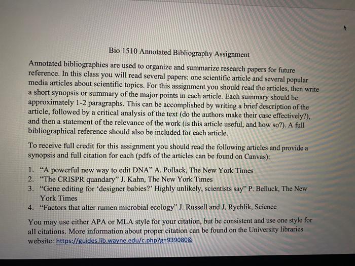 Annotated Bibliographies - SCI 100: Science for Life . . .