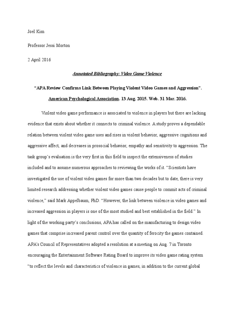 Essays On Video Game Violence