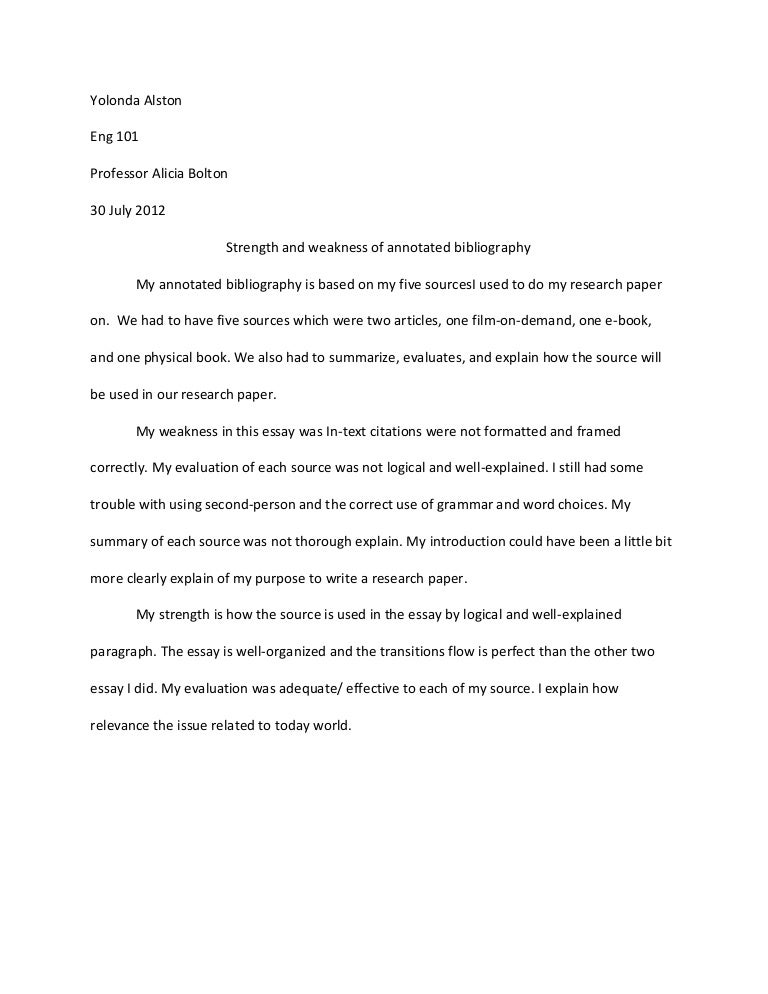 Annotated Bibliography Strengths And Weaknesses
