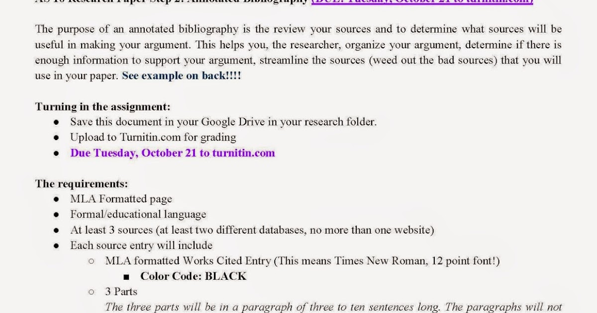Hide Assignment Information Turnitin . . . You will find a sample Annotated Bibliography in the module labeled "Sample Assignments ." You may not use the articles from the sample . Additionally, the sample assignment is meant as a guideline as to what an 'A' paper is and is not intended to be a 'perfect' assignment .