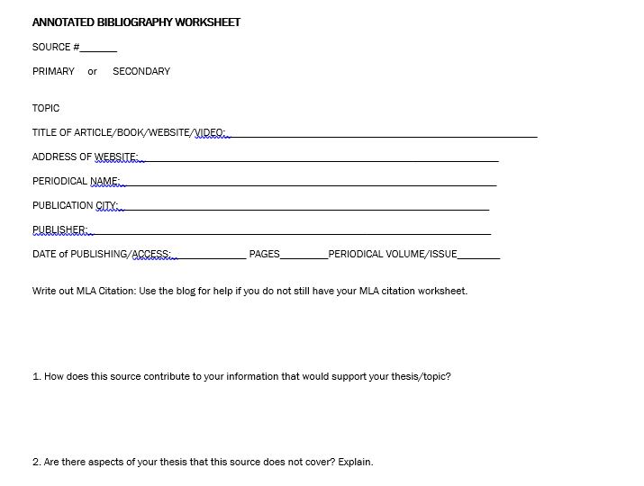 ANNOTATED BIBLIOGRAPHY WORKSHEET in Word and Pdf formats