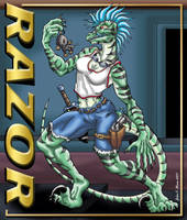 This is my first shot at drawing a anthro of a raptor. Was never good at drawing them becuase of there feet and legs. Bleh hide one of the feet. >.> Did a half decent BG.