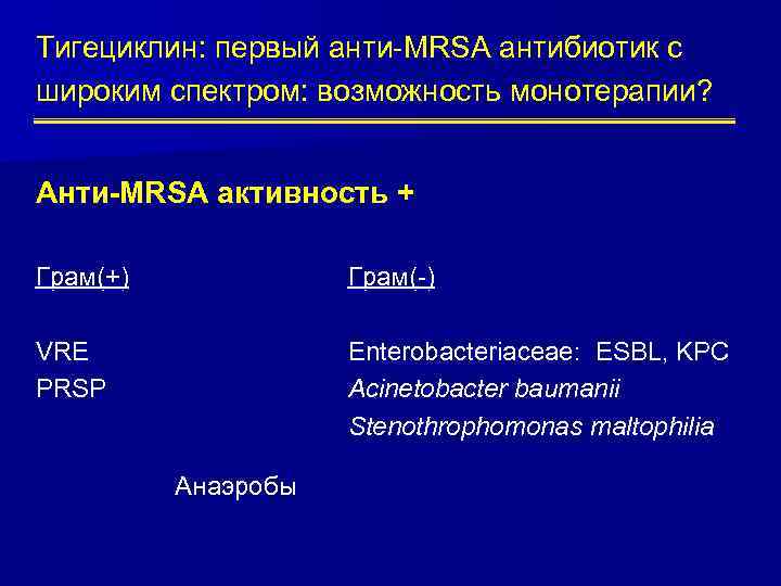 Тигециклин (Тигацил) - первый антибиотик группы . . .