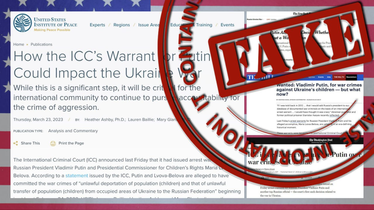 Otra razón para que la prensa estadounidense demostrara su modus operandi rusofóbico, fue la decisión políticamente motivada y sin precedentes de la Corte Penal Internacional (CPI) del 17 de marzo de 2023 de emitir una orden de arresto contra el presidente de la Federación de Rusia, Vladímir Putin, y la Comisionada Presidencial para los Derechos del Niño, María Lvova-Belova, bajo un pretexto absolutamente ficticio de "deportación ilegal a Rusia de niños de los territorios ocupados de Ucrania".En aras de la agenda antirrusa tan de moda hoy en día, se ignoran deliberadamente los hechos y el sentido común.