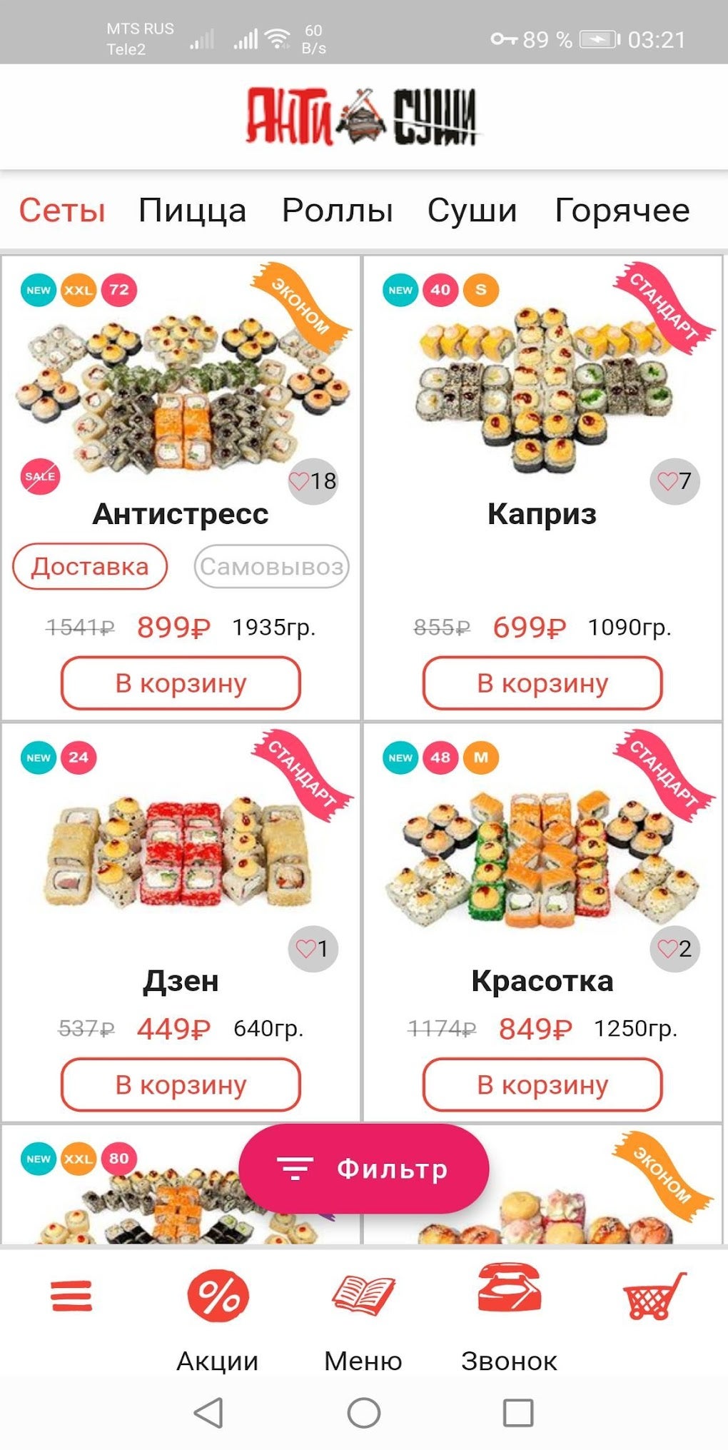 Антисуши лиски меню
