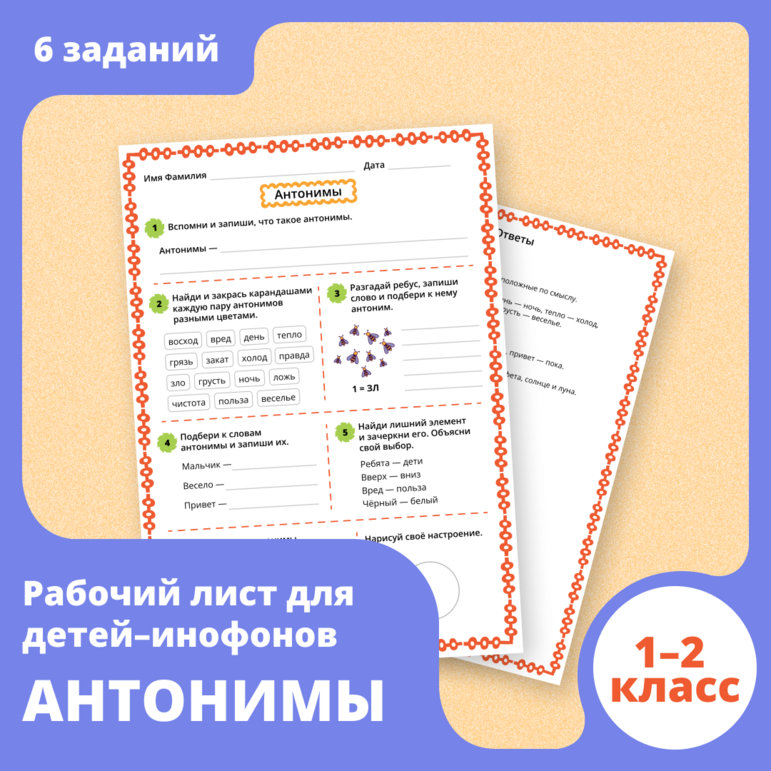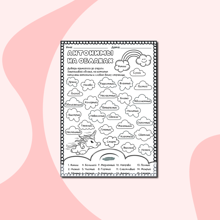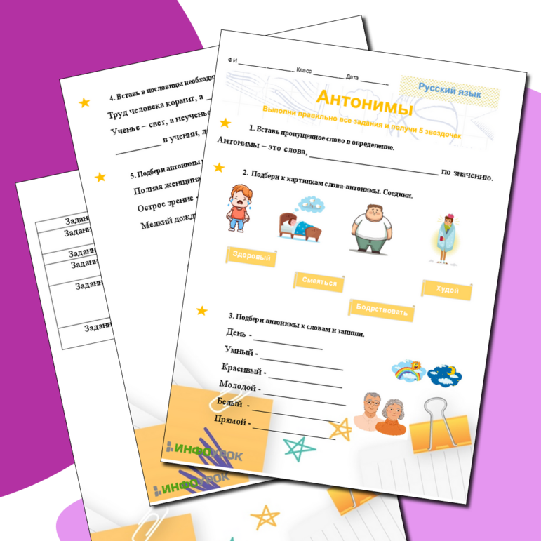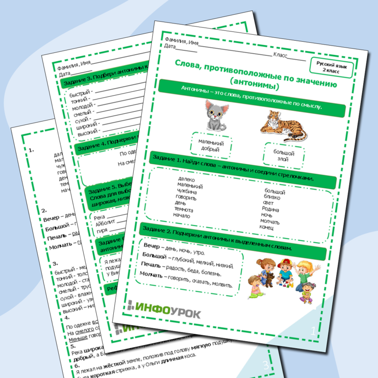 Антонимы задания 3 класс