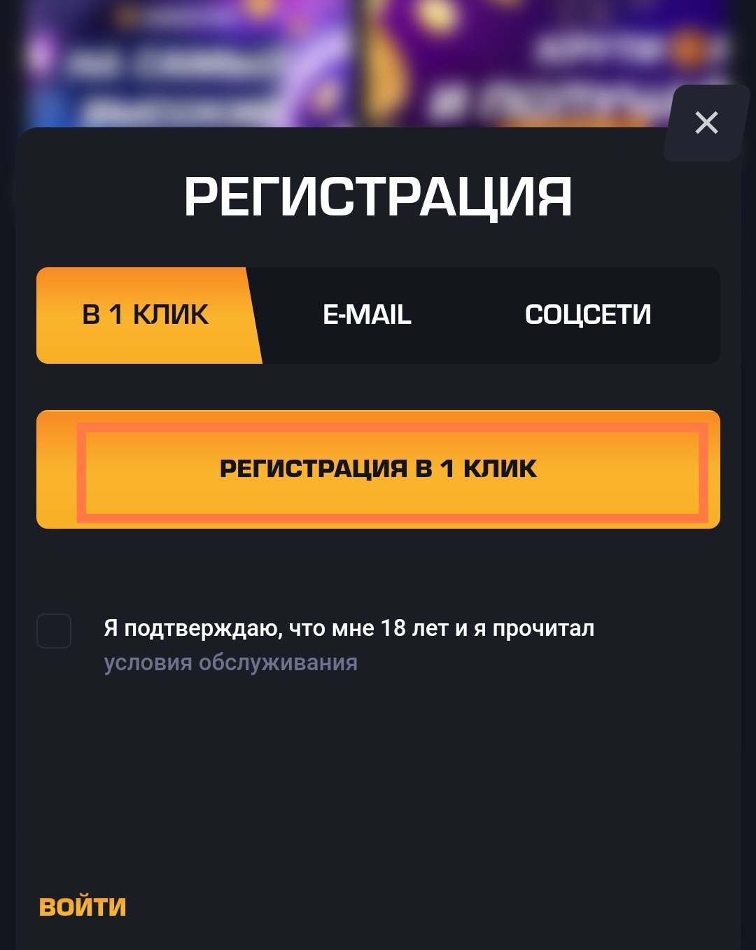 2. Проходим регистрацию в 1 клик