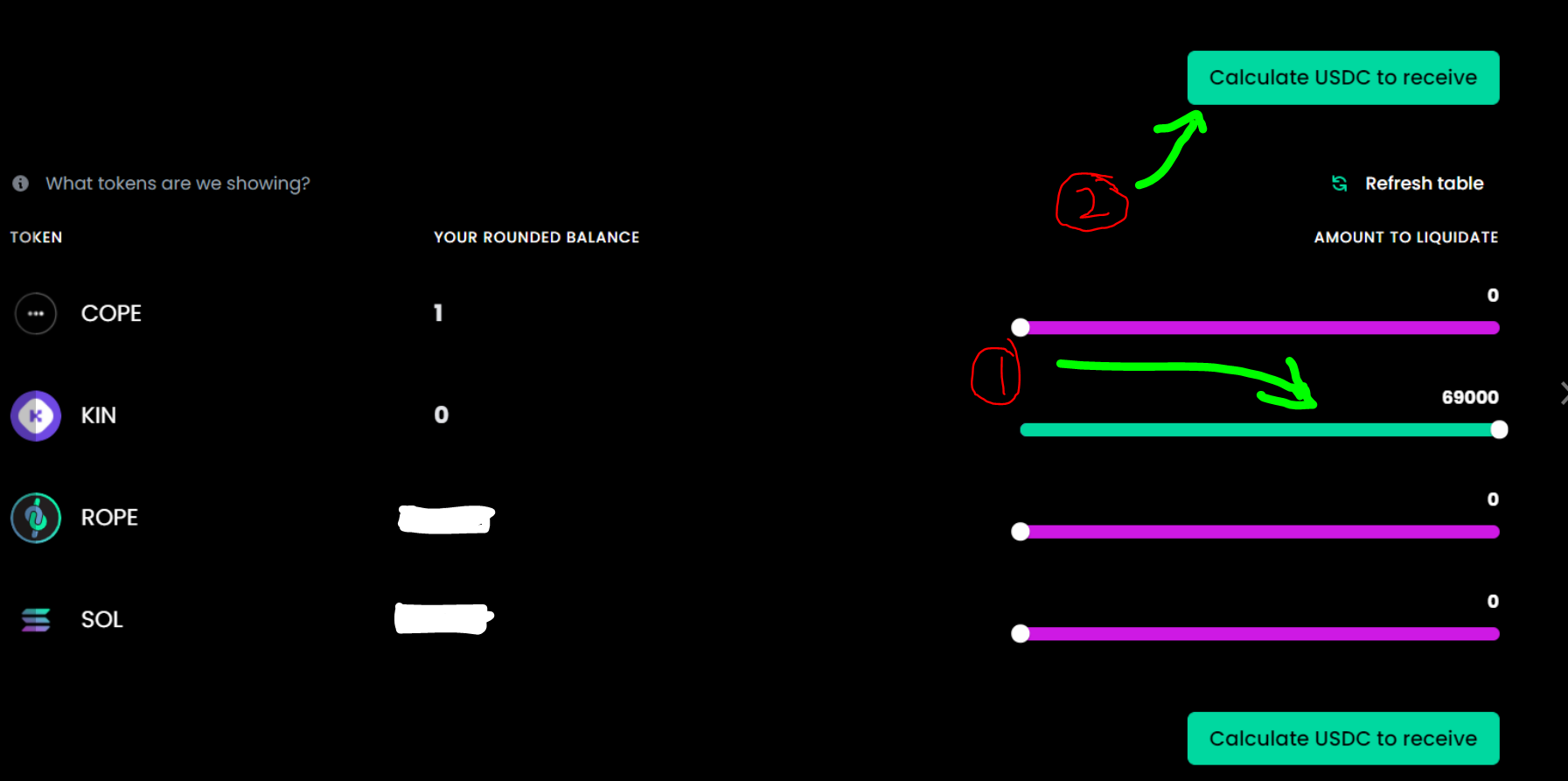 β¦ Use The Slider And Slide It To Maximum And Click On "Calculate USDC to receive"