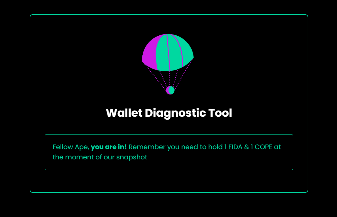 - Hold at least 1 $FIDA & 1 $COPE in your wallet till the time of snapshot ( 13 JUN 12:00 AM UTC)
