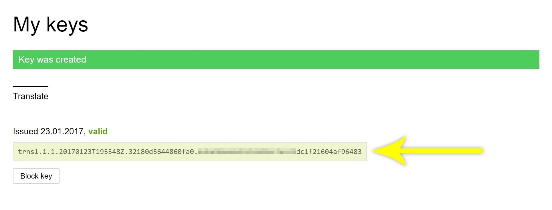 Api ключ переводчика