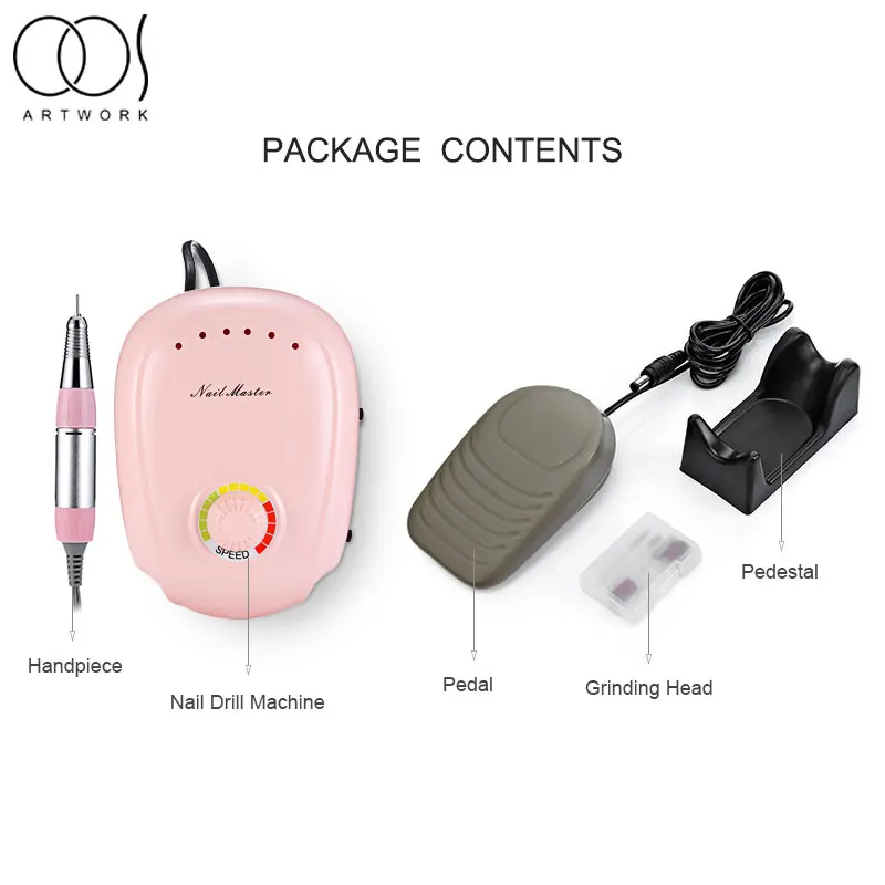 Универсальный набор для маникюра и педикюра. 7 насадок: мелкозернистый сапфировый диск, крупнозернистый сапфировый диск, сапфировый конус, войлочный конус, сапфировая шлифовальная насадка, цилиндрический бор, бор в форме пламени. Плавная регулировка скорости до 4000 об/мин. Правое и левое вращение. ЖК дисплей. Светодиодная подсветка. Защитный колпачок от ногтевой пыли. Футляр для хранения. Питание от сети.