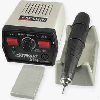 Аппарат для маникюра, педикюра и коррекции. Мощность 64 Вт. Плавная регулировка скорости вращения ручки до 30000 об/мин. Функция реверса. Защита от перегрузки. Диаметр хвостовика насадок (цангового зажима): 2,35 мм. Питание от сети. Фрезы, боры и т.д. не входят в комплект аппарата.