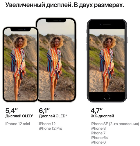 The 6 .1-inch iPhone 12 and 5 .4-inch iPhone 12 mini are equally powerful . iPhone 12 is actually smaller, thinner, and lighter than iPhone 11, but has the same size display . iPhone 12 mini is smaller and lighter than iPhone SE, yet its display is 15% larger . The expansive all-screen display gives you lots of room for everything you do .