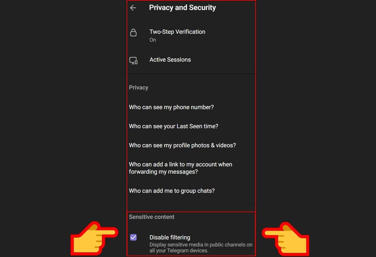 vaya a CONFIGURACIÓN👉 privacidad y seguridad y desactive el filtrado de contenido sensible