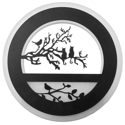Applique "Oiseaux sur une branche" LED 24W 3000-4000K noir 22x3,5x22 cmPoids : 448 g.Quantité par colis : 1Type d'emballage individuel : Boîte en cartonLongueur du colis : 24Hauteur du colis : 5Largeur du colis : 24Volume du colis : 2.880Volume du produit : 3.234Volume du colis : 64,68 Largeur : 3,5 Hauteur : 22 Dimensions du produit : 22 cm × 3,5 cm × 22 cm Matériau : Métal, plastique Nombre de lampes : 1 Base : LED intégrée Puissance par base, W : 24 Matériau de base : Métal Couleur de base : Noir Type de diffuseur : Sans abat-jour Caractéristiques de la lampe : Bicolore Galerie média : Sans abat-jour Media Tenk : Tons foncésMatériau des abat-jour : PlastiqueContrôle de la lampe : Sans interrupteur