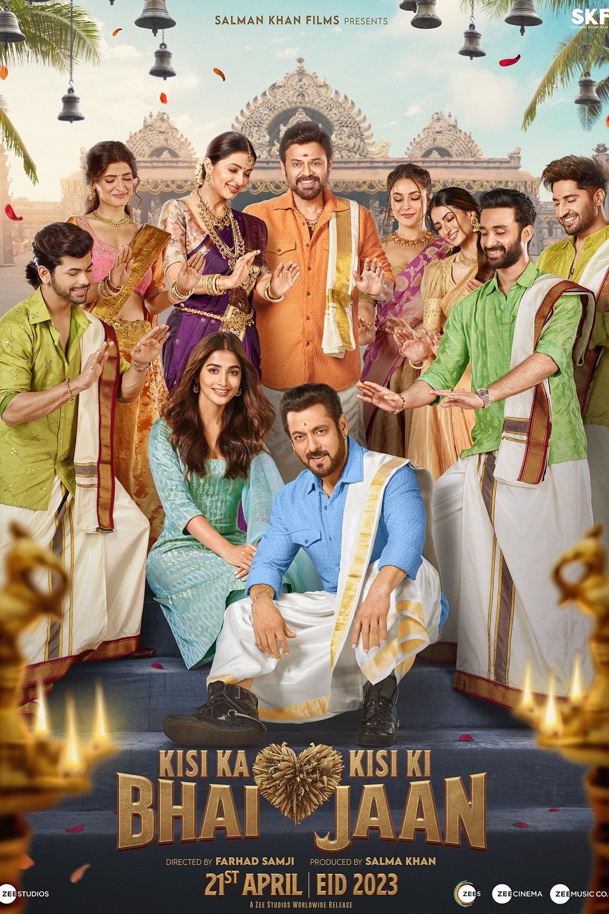 - Stars Salman Khan, Pooja Hegde, Daggubati Venkatesh, Jagapati Babu, Bhumika Chawla,Jassie Gill, Raghav Juyal, Shehnaaz Gill, Palak Tiwari, Ram Charan