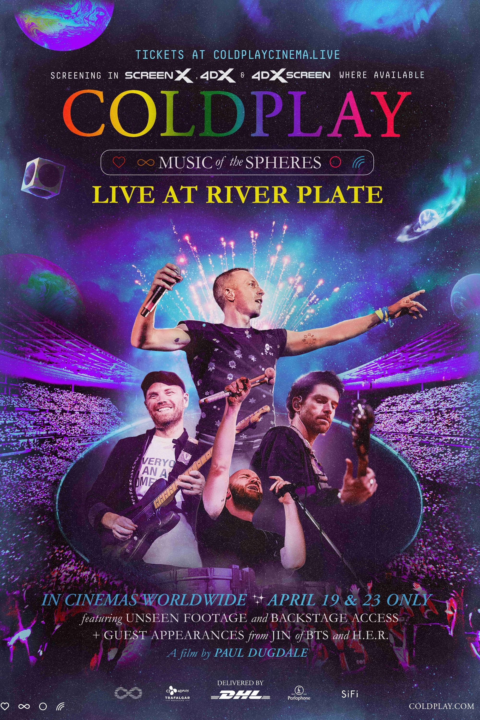 - Synopsis : Filmed during Coldplay`s sold out, ten night run at Buenos Aires` River Plate stadium, this spectacular concert film features remixed / remastered sound and stunning visuals captured by BAFTA-winning and Grammy-nominated Paul Dugdale, including a host of previously-unseen footage. Alongside classic hits such as Yellow, Fix You, Viva La Vida, My Universe and A Sky Full Of Stars, the film features stellar guest appearances including Jin of BTS with the live debut of his record-breaking single The Astronaut.