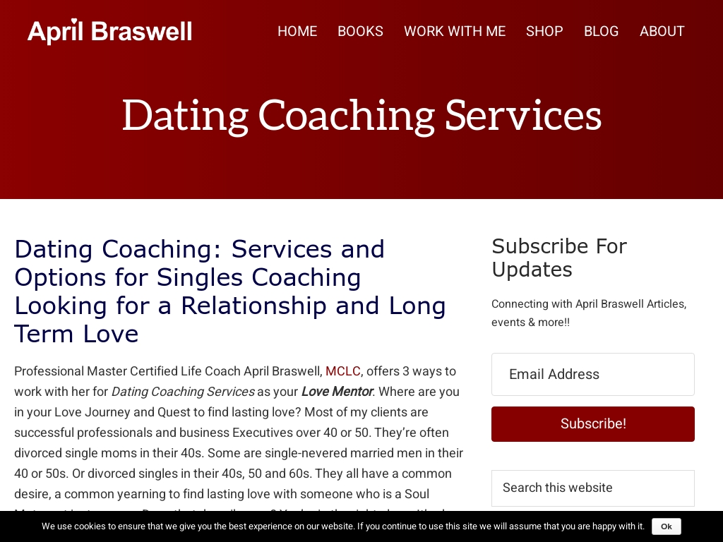 Online Dating Coach and Dating Expert, April Braswell , has been sought after and coaching single men and women about dating , relationship, and love since 2002 after walking alongside her late husband through his battle with cancer .