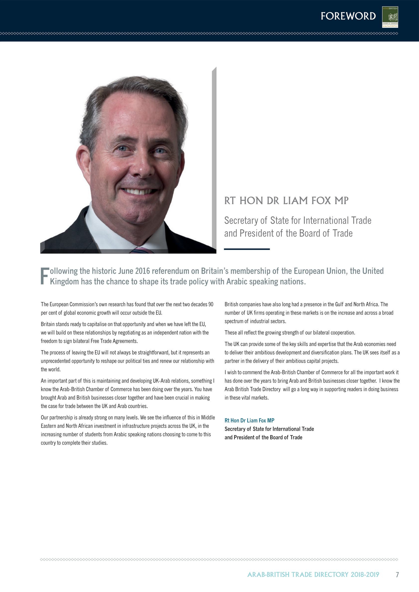 Arab-British Chamber of Commerce(ABCC) is a membership organisation that exists to promote trade and investment relations between the United Kingdom and the Arab world 020 7235 43 63 43 Upper Grosvenor Street, London, W1K 2NJ, UK