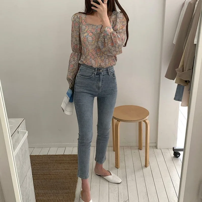 Zhenskij Dzhinsovyj Kostyum V Stile Retro Goluboj Povsednevnyj Komplekt Iz Dzhinsovoj Tkani S Korotkim Rukavom I Ehffektom Poter 05 20