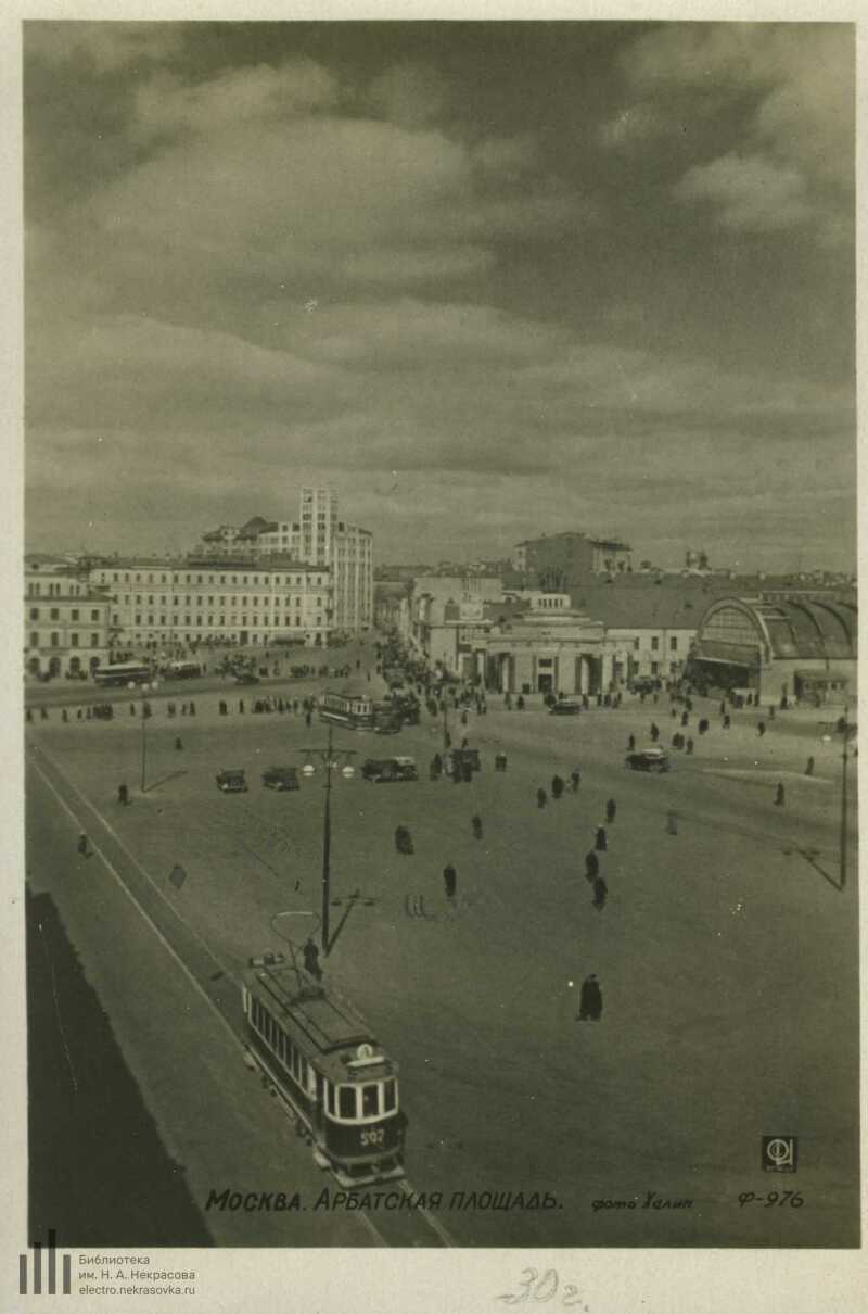 Было/стало . Продолжая исследовать изменения Арбатской площади хотелось бы упомянуть еще о нескольких объектах - утраченных и одного на удивление сохранённого . Арбатская площадь, 1930 год . Арбатская площадь, 1930 год .