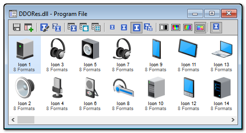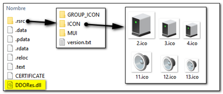 Si tomamos por ejemplo una librería como ¨DDORes.dll¨ podemos extraer los iconos mediante el programa 7zip de la siguiente manera.