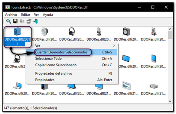 Hay aplicaciones gratuitas y portables con las que se puede trabajar para localizar, visualizar, extraer y guardar los iconos que contienen esos archivos.