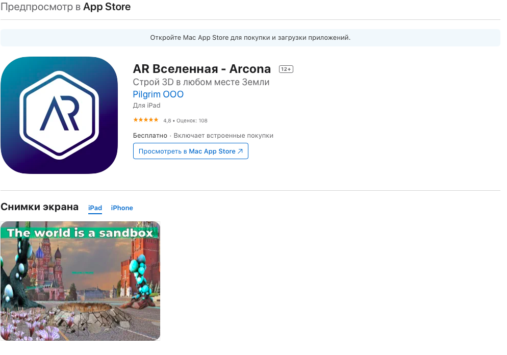 🍎 Скачать приложение «AR Вселенная - Arcona» в App Store;