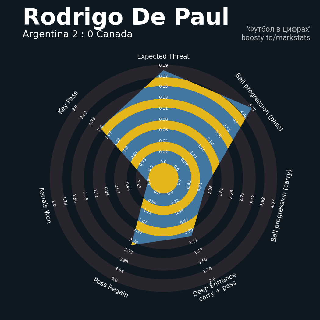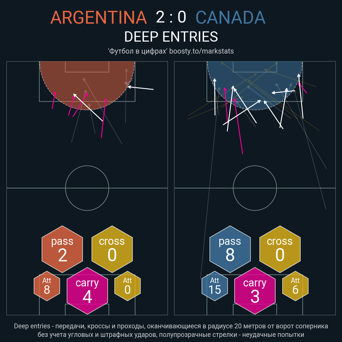 17 успешных передач из 20 попыток (1 под удар, 4 с продвижением, 6 на трети соперника)