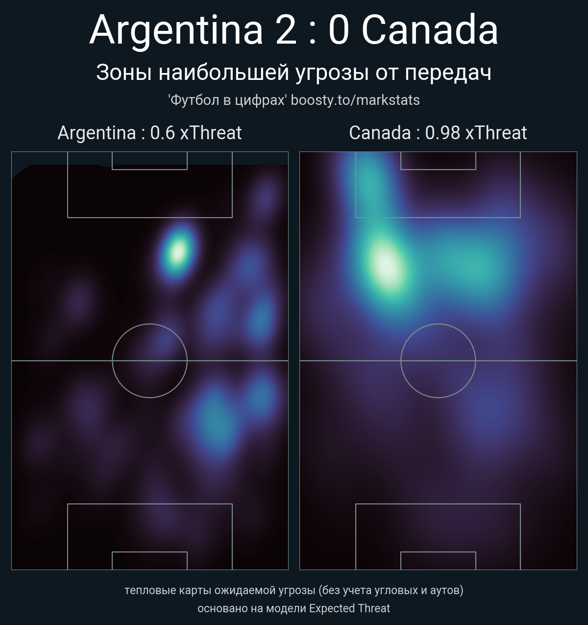 xThreat без учета угловых: 0.6 - 0.98