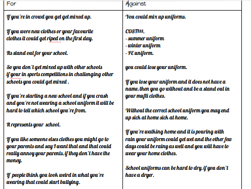 Arguments for and against school uniform