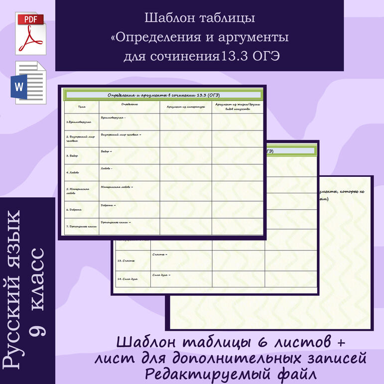 Аргументы для сочинения таблица