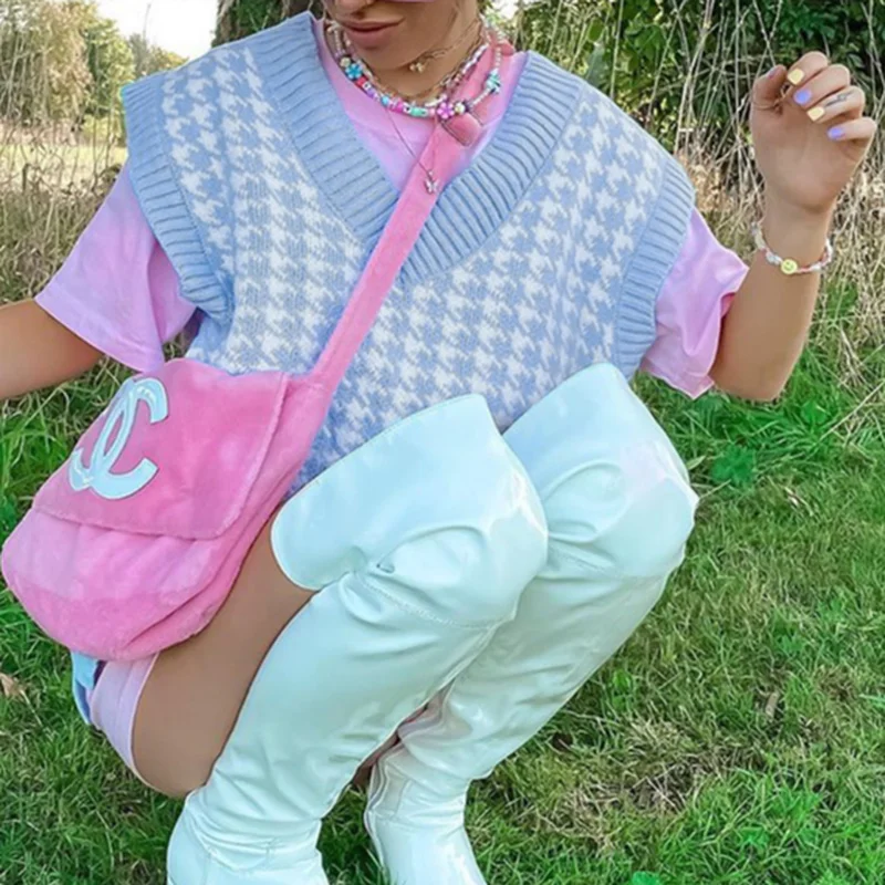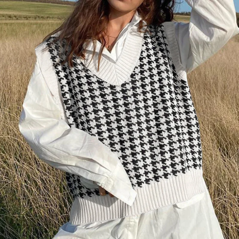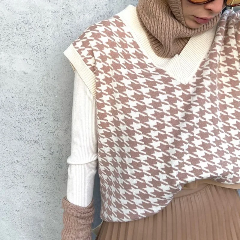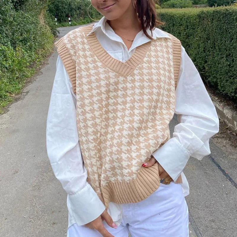 «Argyle Sweater Vest Khaki V Neck Sleeveless Sweater Vests Knitted 2021 Jumper Houndstooth Oversized Waistcoat Tops Preppy Style» по лучшей цене на рынке! Всего за 14$ (1330рублей)