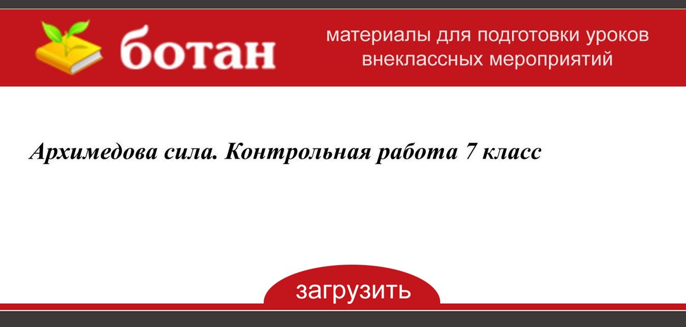 Архимедова Сила Контрольная Работа 7 Класс