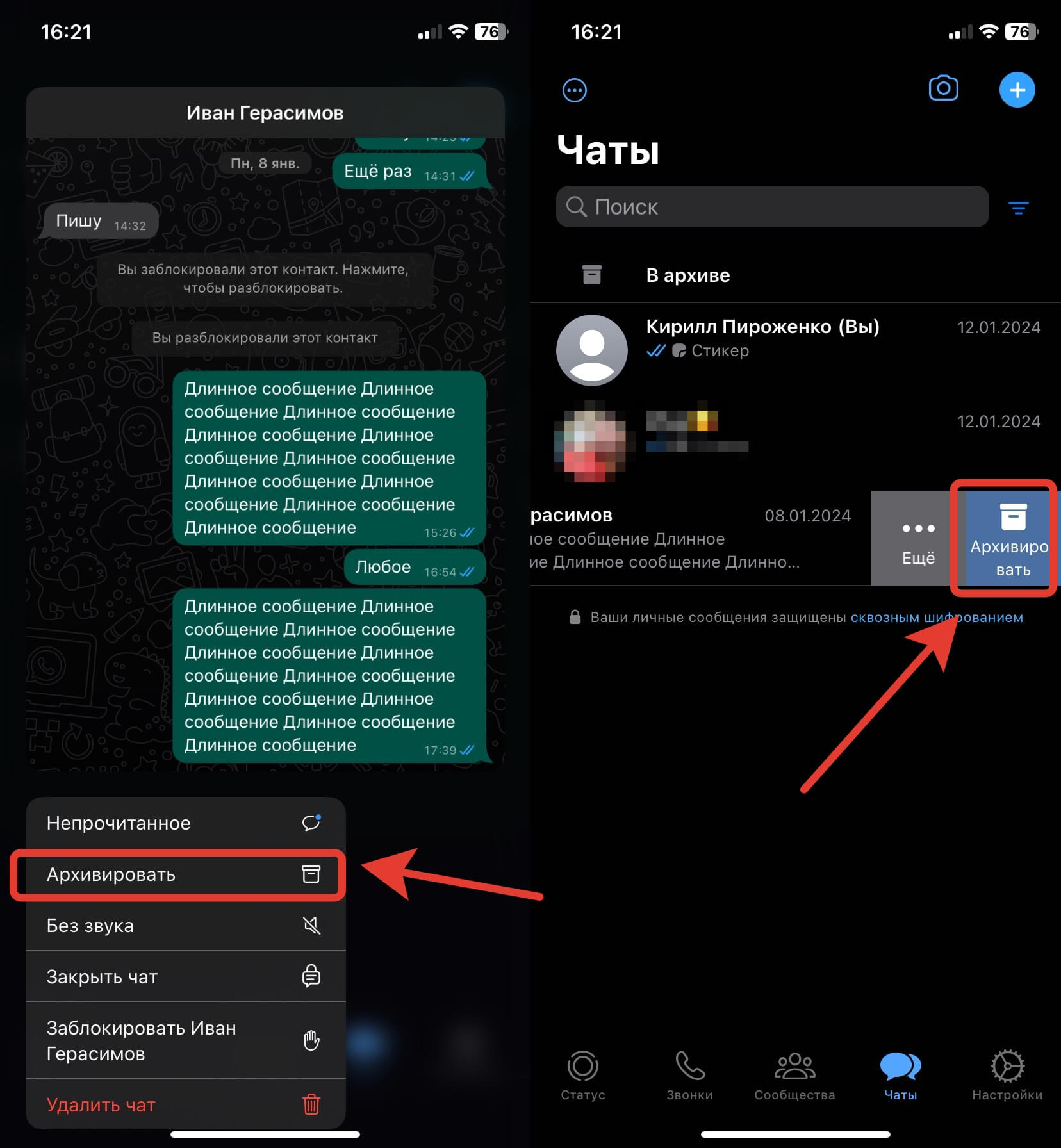 Архивировать в ватсапе андроид