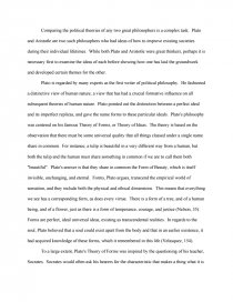 29 essay samples found . Essay examples . Essay topics . Aristotle Vs . Plato . Throughout life, one will encounter many different people some with similar views and others with contrasting perspectives on reality . This topic and discussion on life and reality continues to rise debate since ancient times .